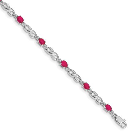 10k White Gold Diamond and Ruby Bracelet