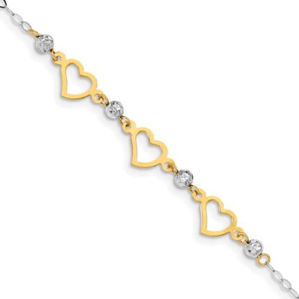 14k Two-tone Diamond-cut Hearts with Flowers 7.25 inch Bracelet
