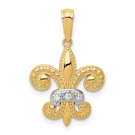 14k 1/5 carat Lab Grown Diamond VS/SI+ G+ Complete Fleur De Lis Pendant