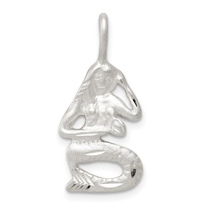 14K with White Rhodium Diamond Cut Mermaid Pendant