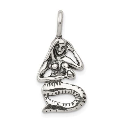 De-Ani Sterling Silver Rhodium-Plated Polished 3D Anchor with Mermaid Pendant