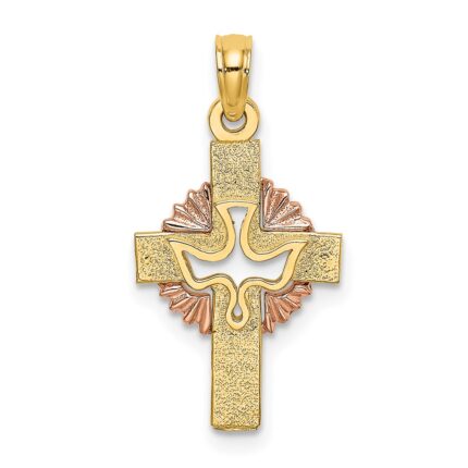 14K Two-Tone Cut-Out Dove On Cross Charm