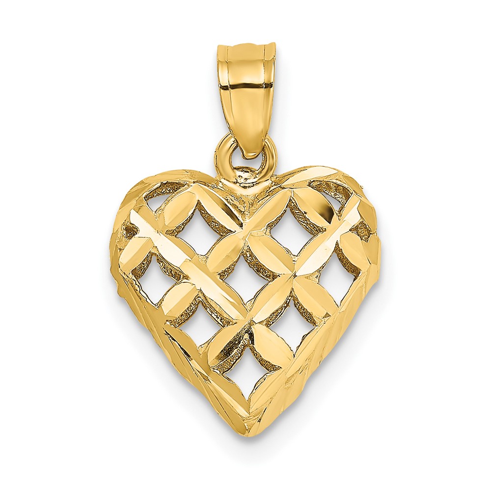 10K 3-D Diamond-cut Filigree Puffed Heart Charm