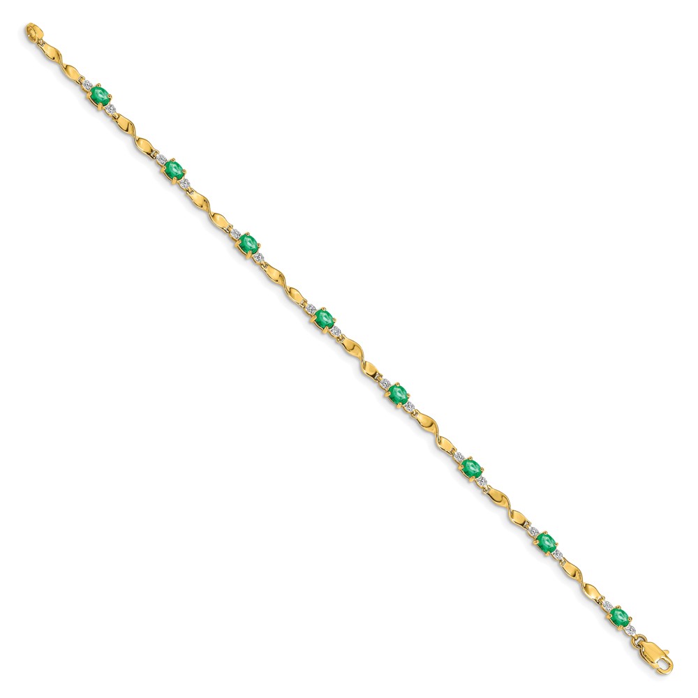 10k Diamond and Oval Emerald Bracelet