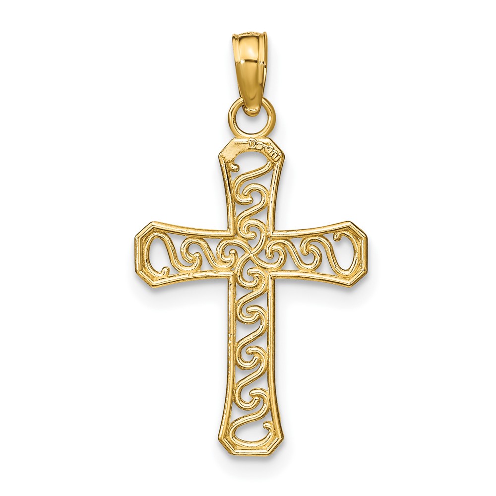 14K White Gold Polished 1/5 carat Diamond Framed Dangle Cross Pendant
