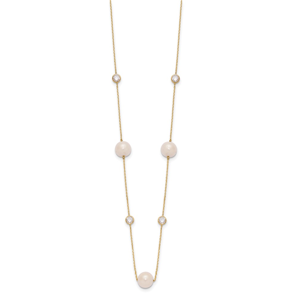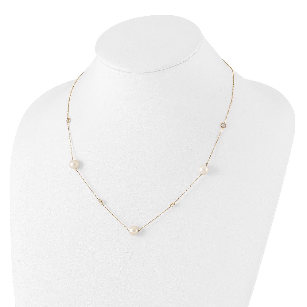 10K Polished CZ and 7-8mm FWC Pearl 7 Station Necklace