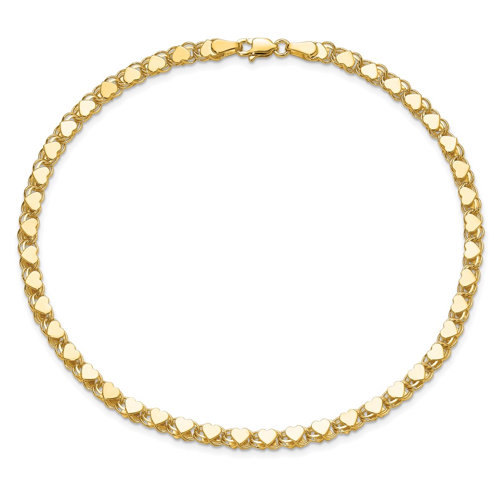 10k Polished Double-Sided 2.6mm Heart Links Anklet