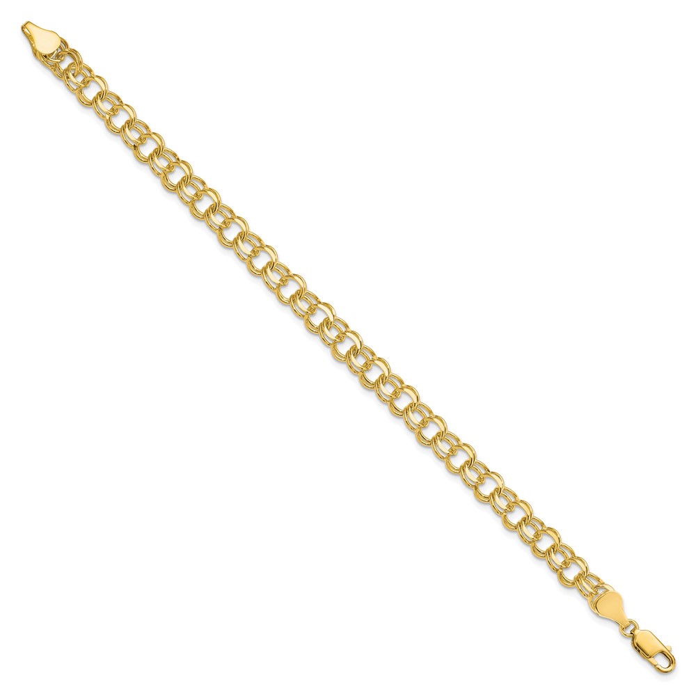 10k 7in 6.5mm Solid Double Link Charm Bracelet