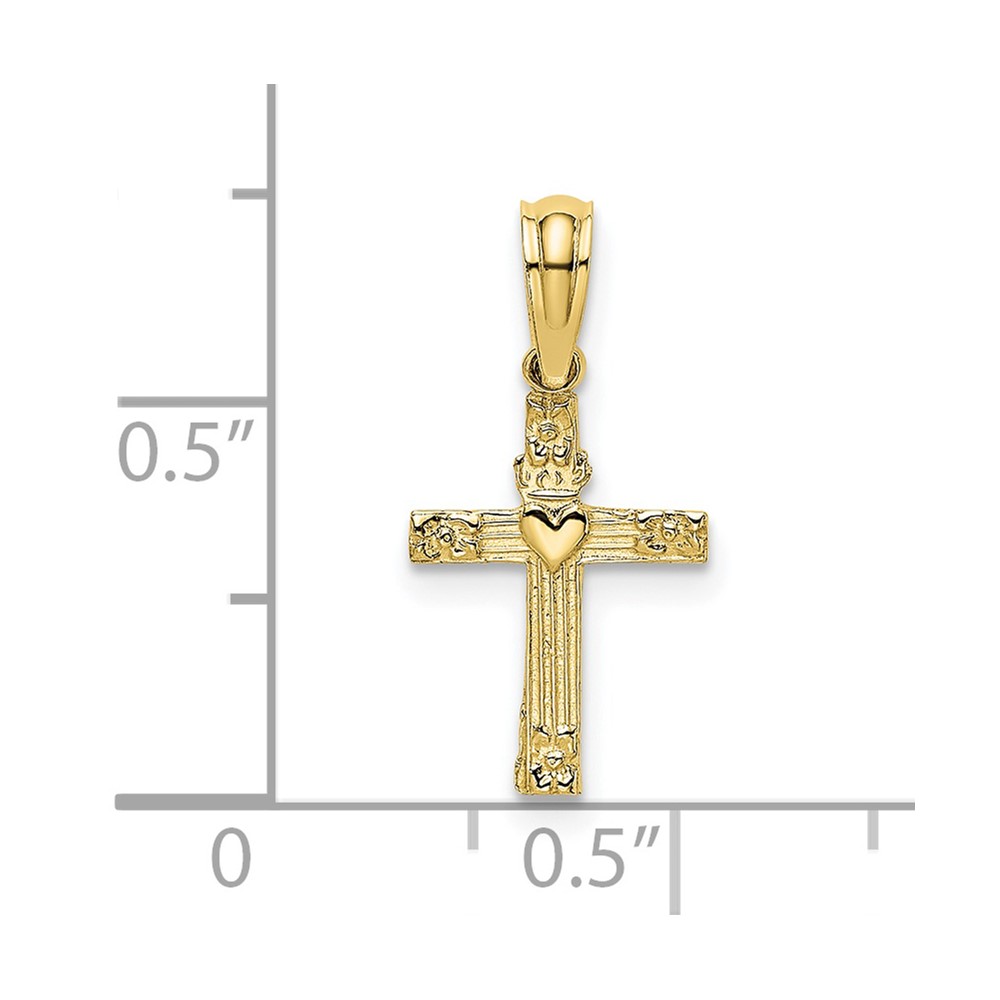 10K Textured Mini Cross w/ Heart Charm