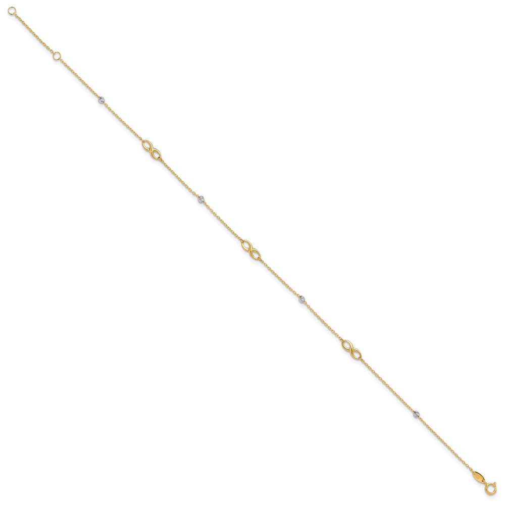 10K Two-Tone Infinity and Diamond-cut Beads Plus Extender – Total Anklet