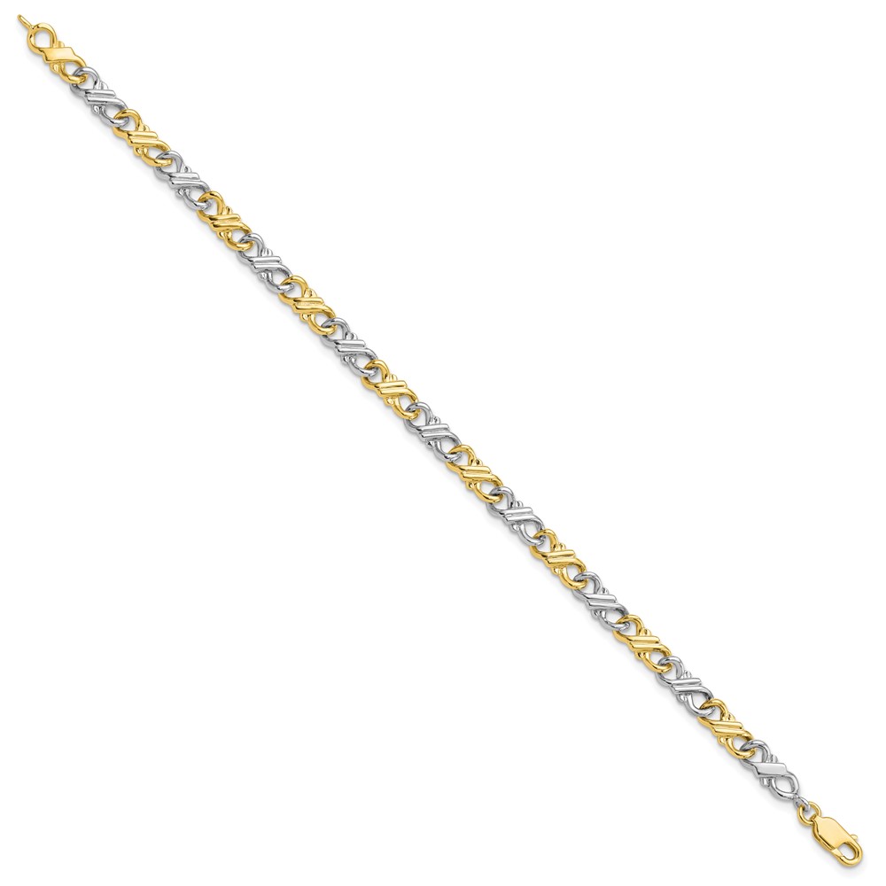 10k Two-tone 8.5mm Hand-polished Fancy Link Bracelet