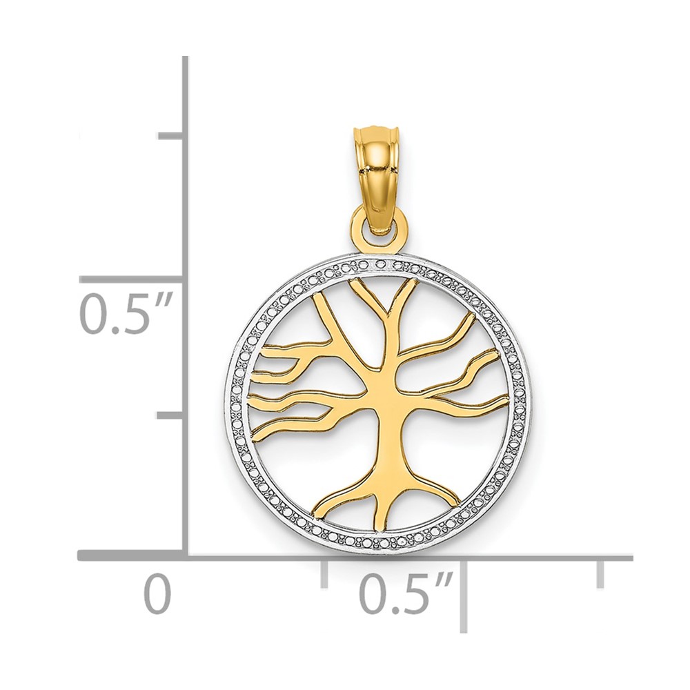 10K w/Rhodium 3-D Tree Of Life In Round Frame Charm