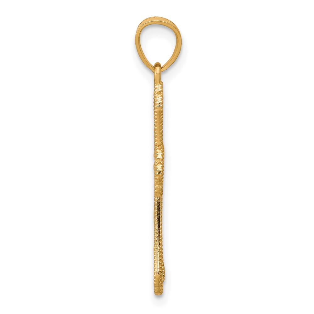 10K w/ Rhodium Diamond-Cut Cross Pendant