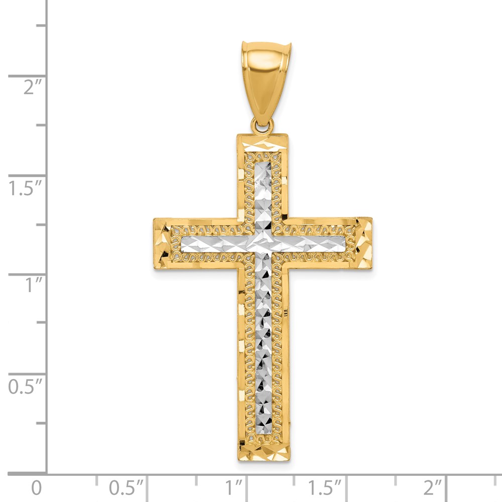 10K w/ Rhodium Diamond-Cut Cross Pendant