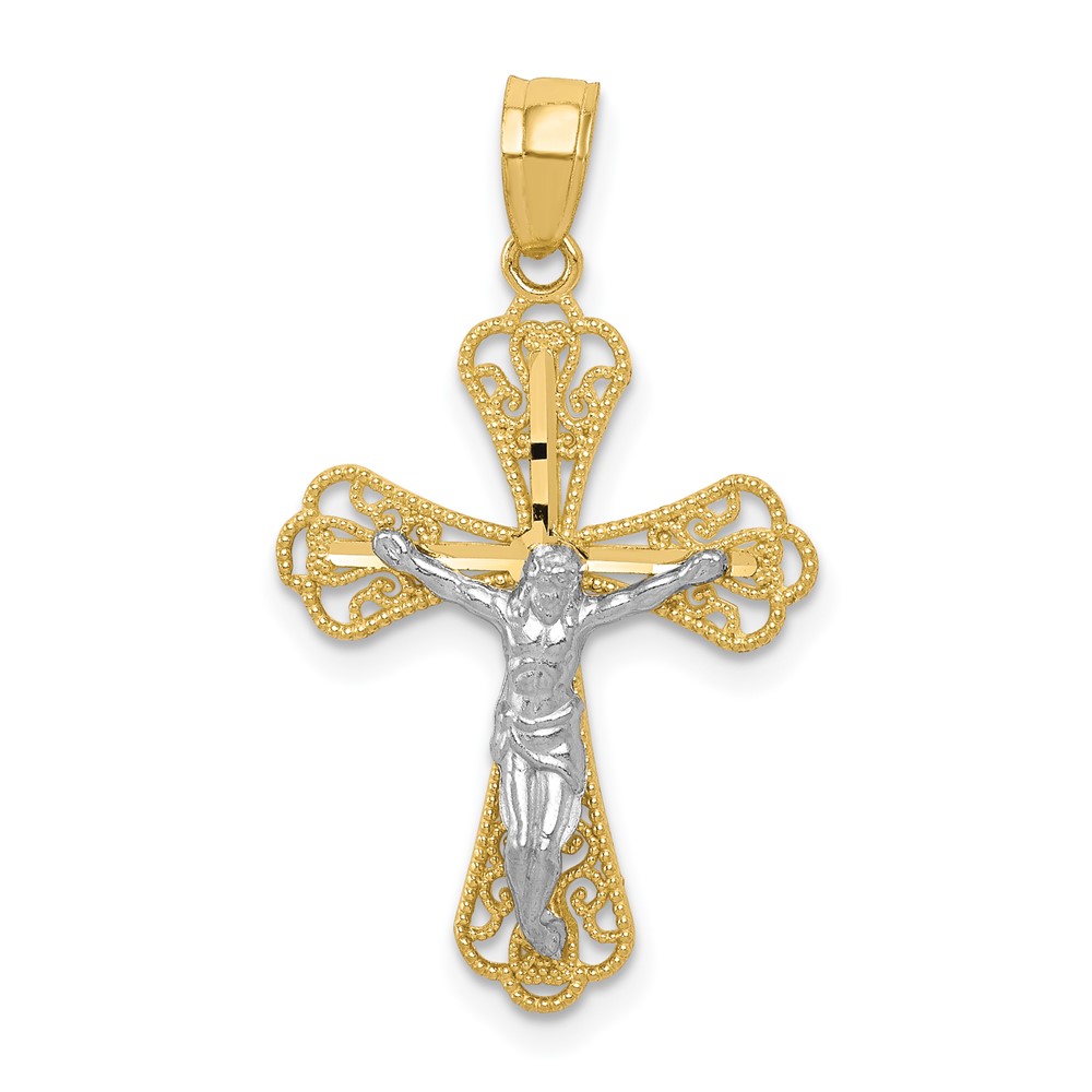 10K w/ Rhodium Filigree Crucifix Pendant