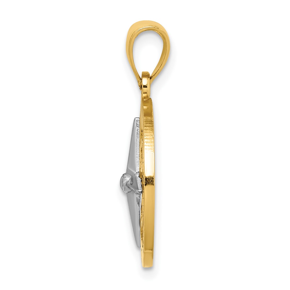 10K w/Rhodium Nautical Compass White Needle Charm