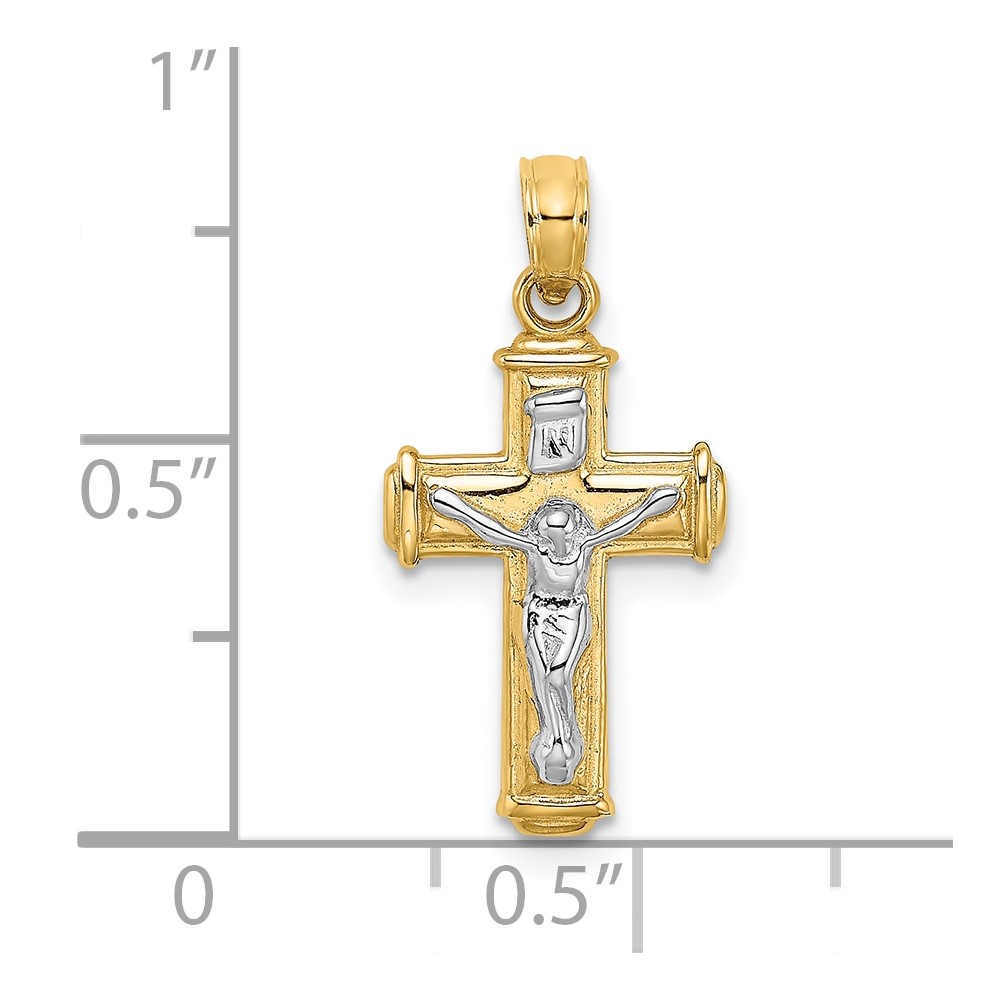 10K W/ Rhodium Polished Block Crucifix INRI Charm