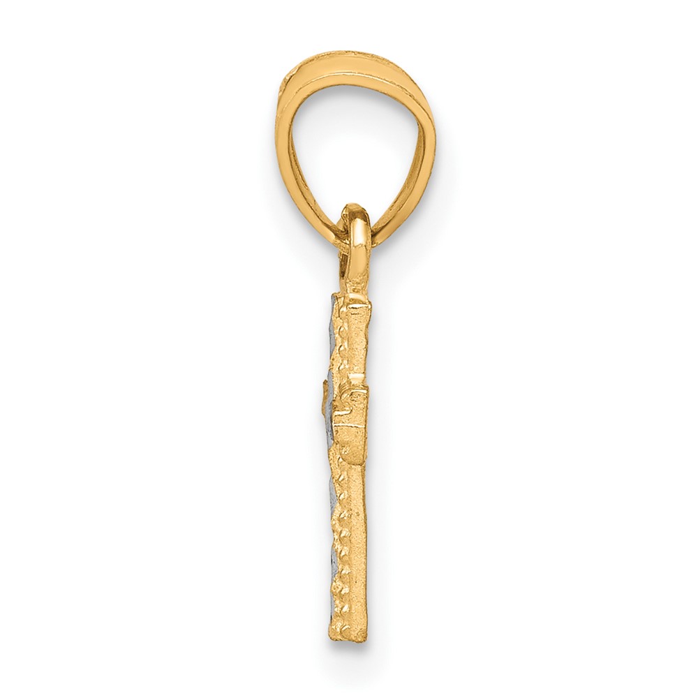 10K w/ Rhodium Tiny Diamond-Cut Cross Pendant