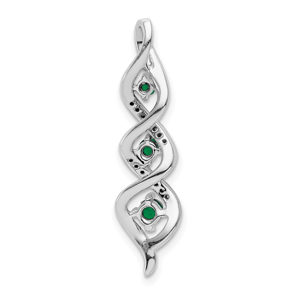10k White Gold 1/15 carat Lab Grown Diamond VS/SI+ G+ and Lab Created Emerald Twist Chain Slide Pendant