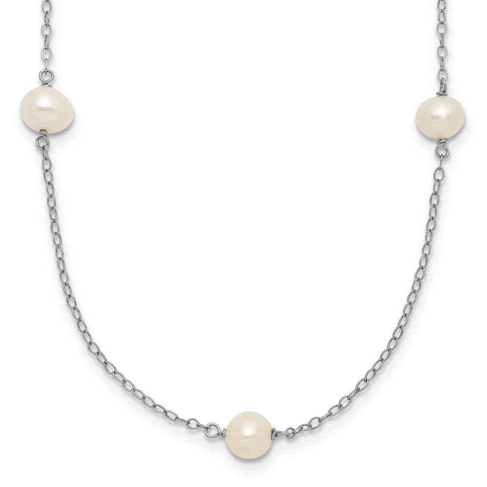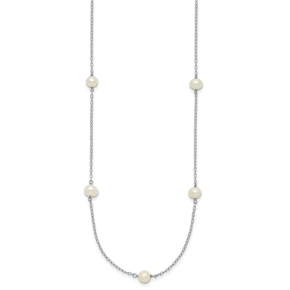 10K White Gold 5-6mm Round White Freshwater Cultured Pearl 7 Station 18 inch Necklace