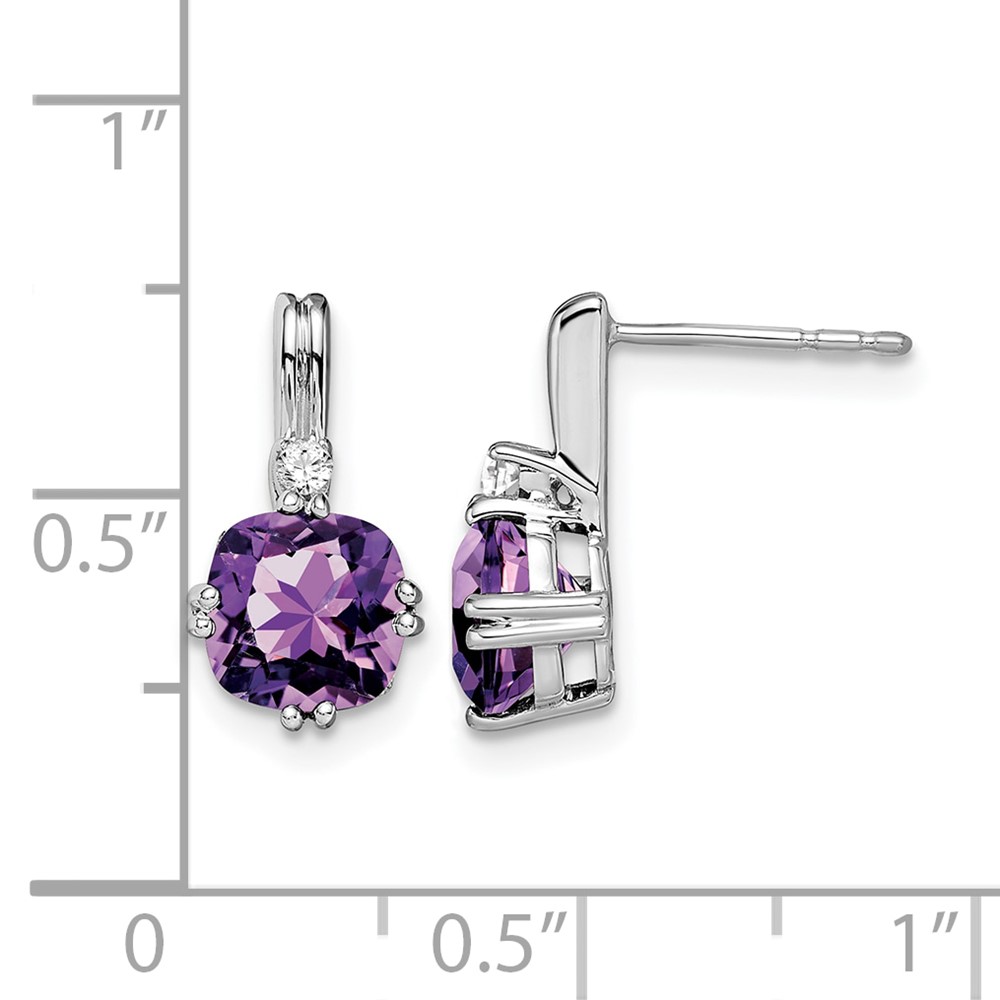10k White Gold Cushion Amethyst and Diamond Earrings