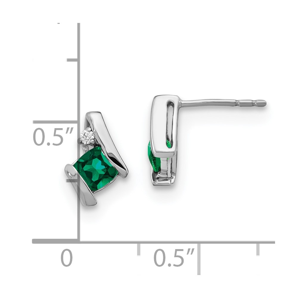10k White Gold Cushion Cr. Emerald and Diamond Earrings