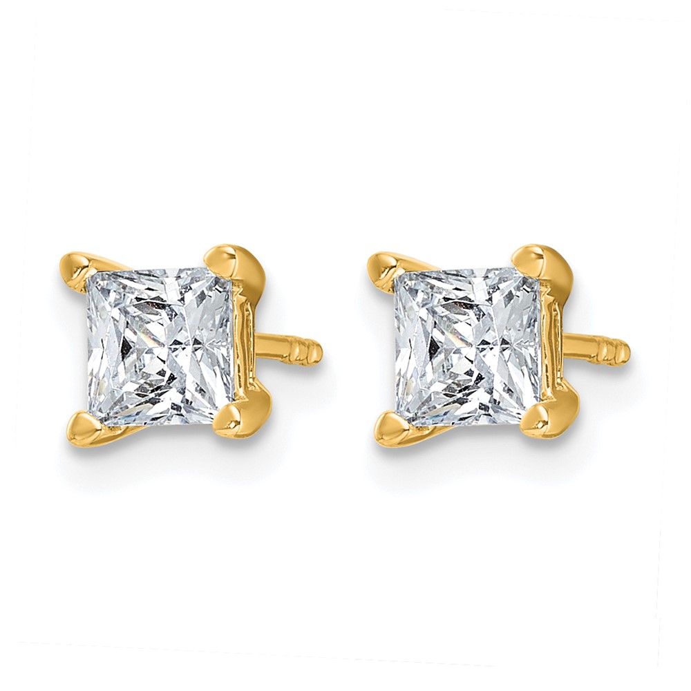 14k 1 1/2 carat Certified Lab Grown Diamond VS+ F+ Princess Complete Four Prong Stud Earrings