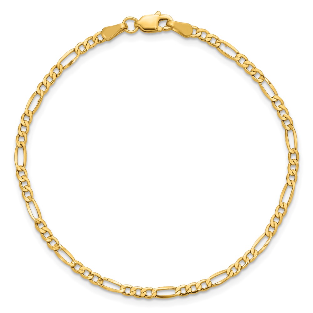 10k 2.5mm Semi-Solid Figaro Chain Anklet