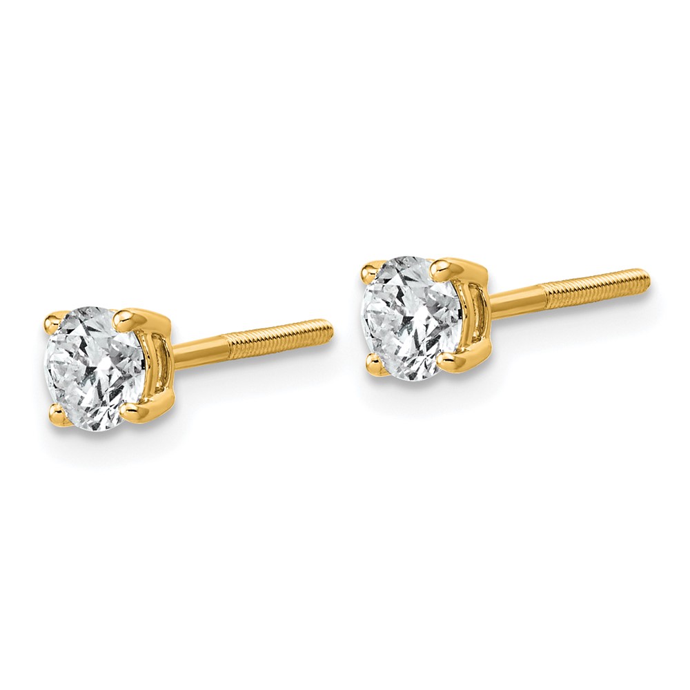 14k 3/4 carat Lab Grown Diamond VS+ F+ Round Complete Four Prong Lightweight Screwback Stud Earrings