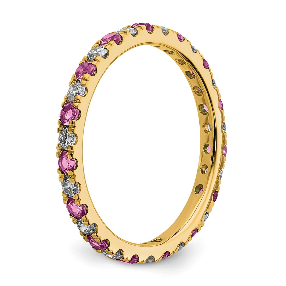 14k 3/8 carat Lab Grown Diamond VS/SI+ G+ and Lab Created Pink Sapphire Size 4.5 Eternity Band