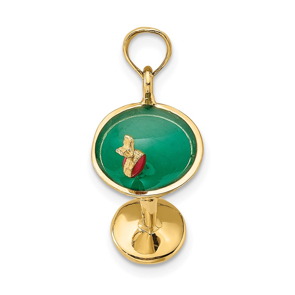 14K 3-D Green Enamel Martini with Red Cherry Charm