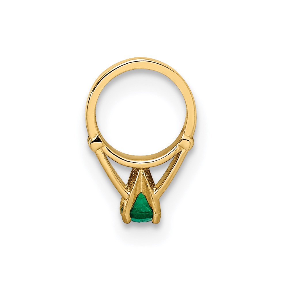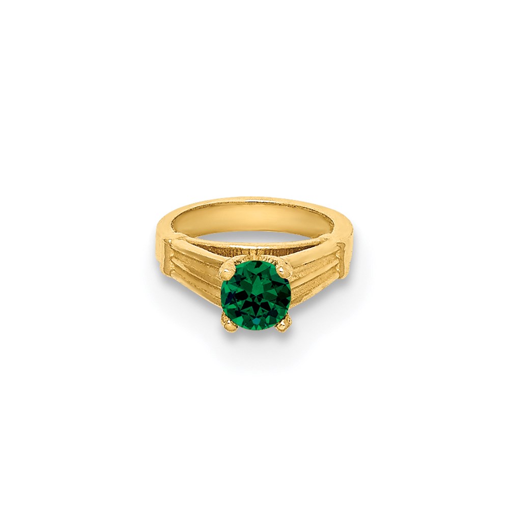 14K 3-D May Ring with Dark Green Glass Stone Charm