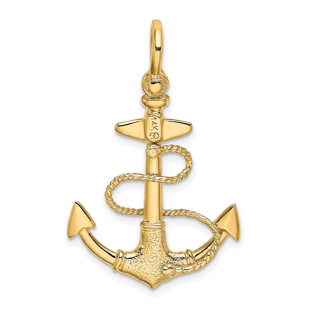 14K 3-D Textured Anchor with Rope and Shackle Bail Charm