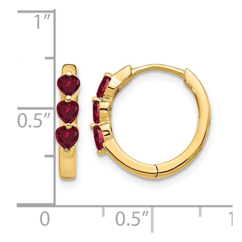 14k 3mm Heart Lab Created Ruby Polished Hinged Hoop Earrings
