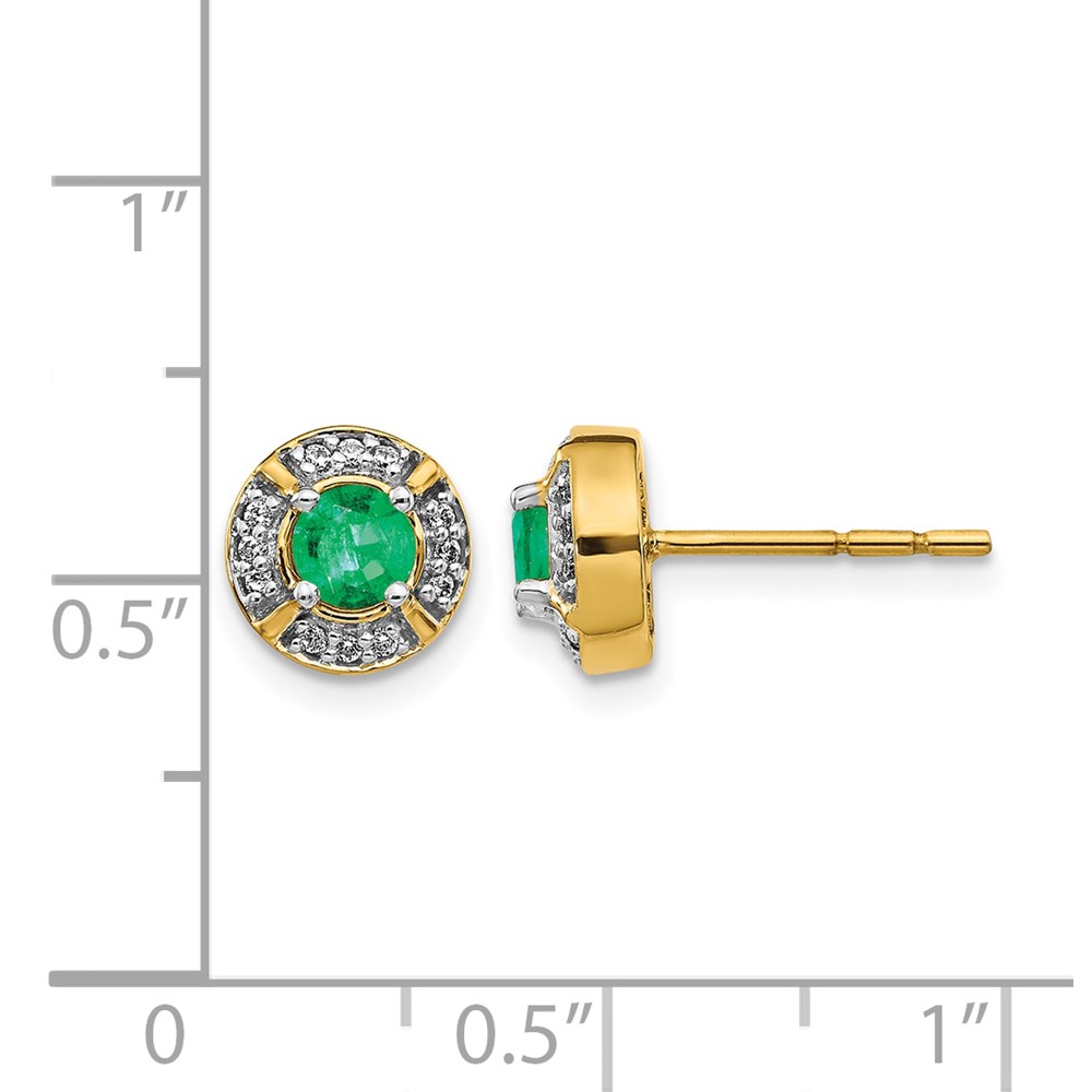 14k 4.1mm Round Emerald and Diamond Halo Post Earrings