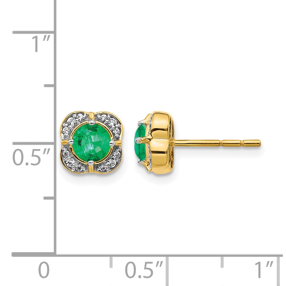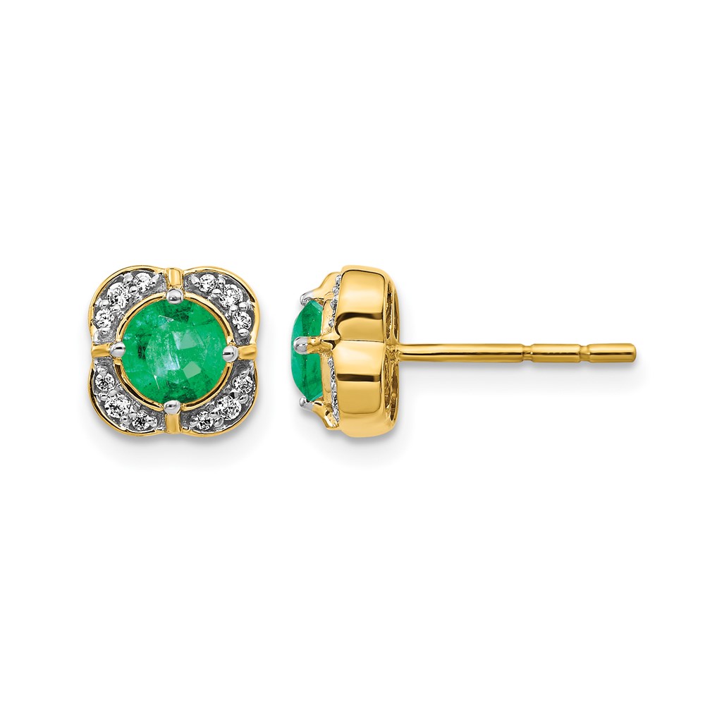 14k 4.5mm Round Emerald and Diamond Fancy Square Post Earrings