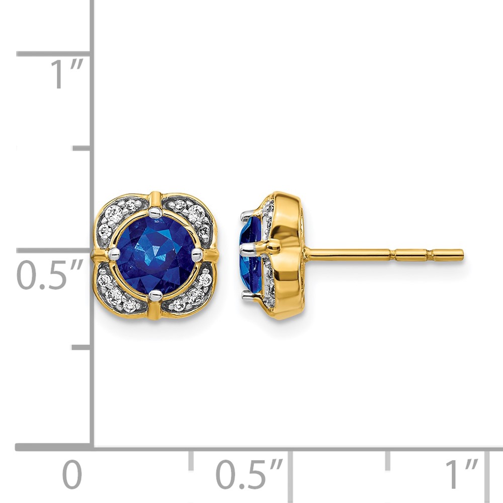 14k 5.2mm Round Sapphire and Diamond Fancy Square Post Earrings