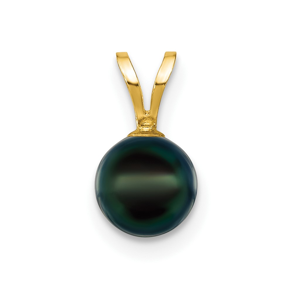 14k 6-7mm Black Round Akoya Saltwater Cultured Pearl Pendant