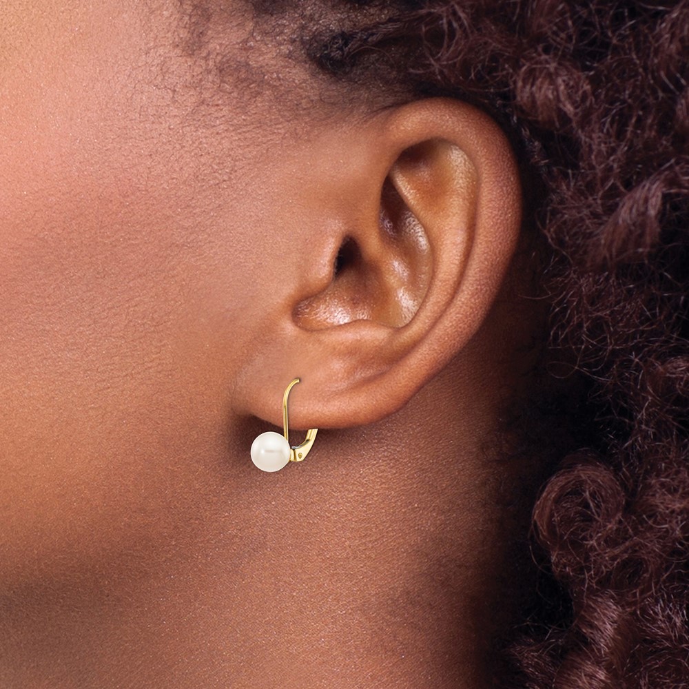 14k 6-7mm White Round Akoya Saltwater Cultured Pearl Leverback Earrings