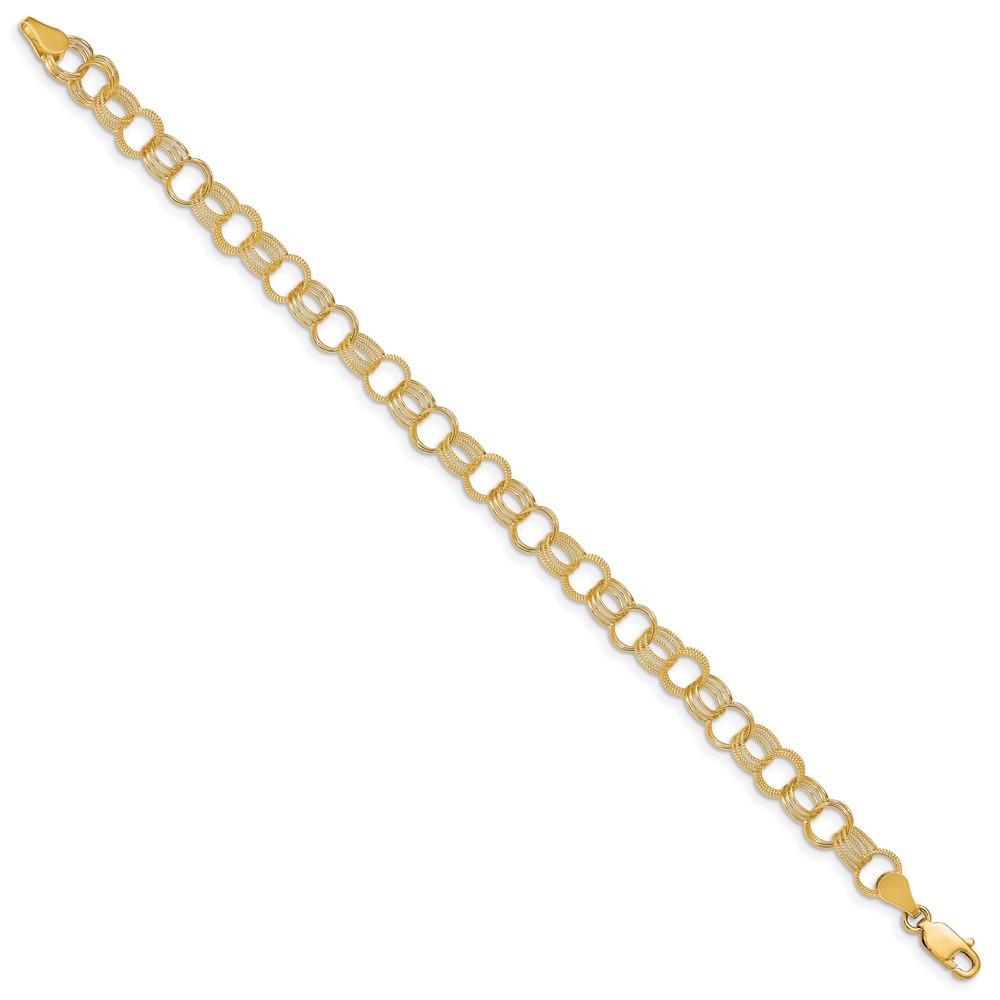 14k 7.5mm Solid Polished and Textured Triple Link Charm Bracelet