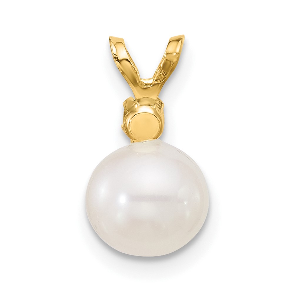 14k 7-7.5mm White Round Freshwater Cultured Pearl and .09EM Emerald Pendant