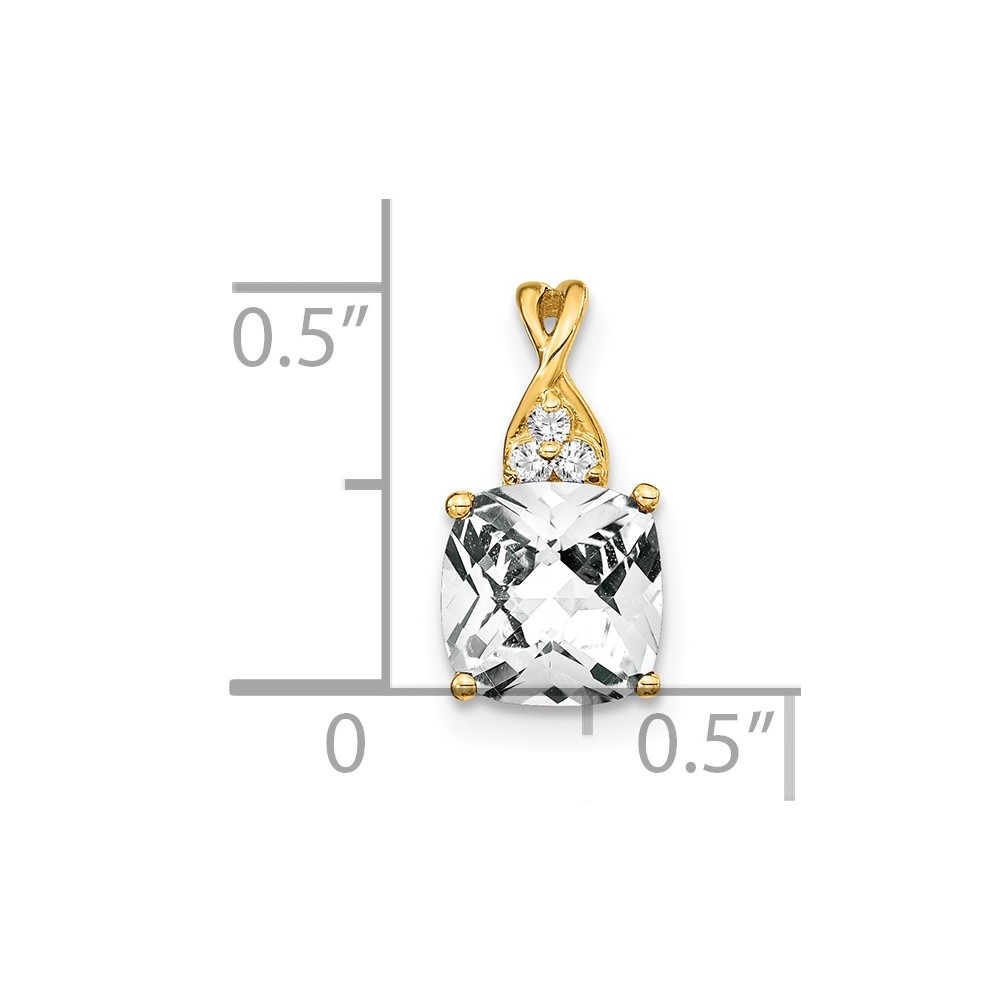 14k 7mm Cushion Checkerboard April/White Topaz and Diamond Pendant