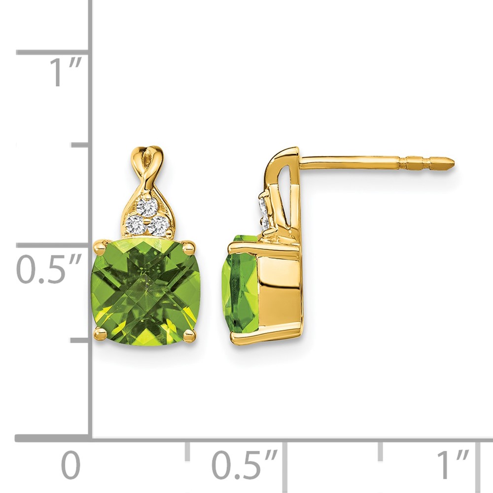 14k 7mm Cushion Checkerboard August/Peridot and Diamond Post Earrings