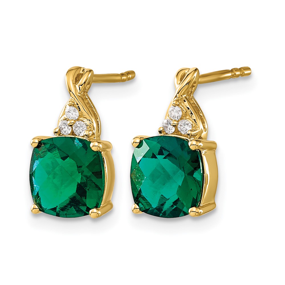 14k 7mm Cushion Checkerboard May/Lab Created Emerald and Diamond Post Earrings