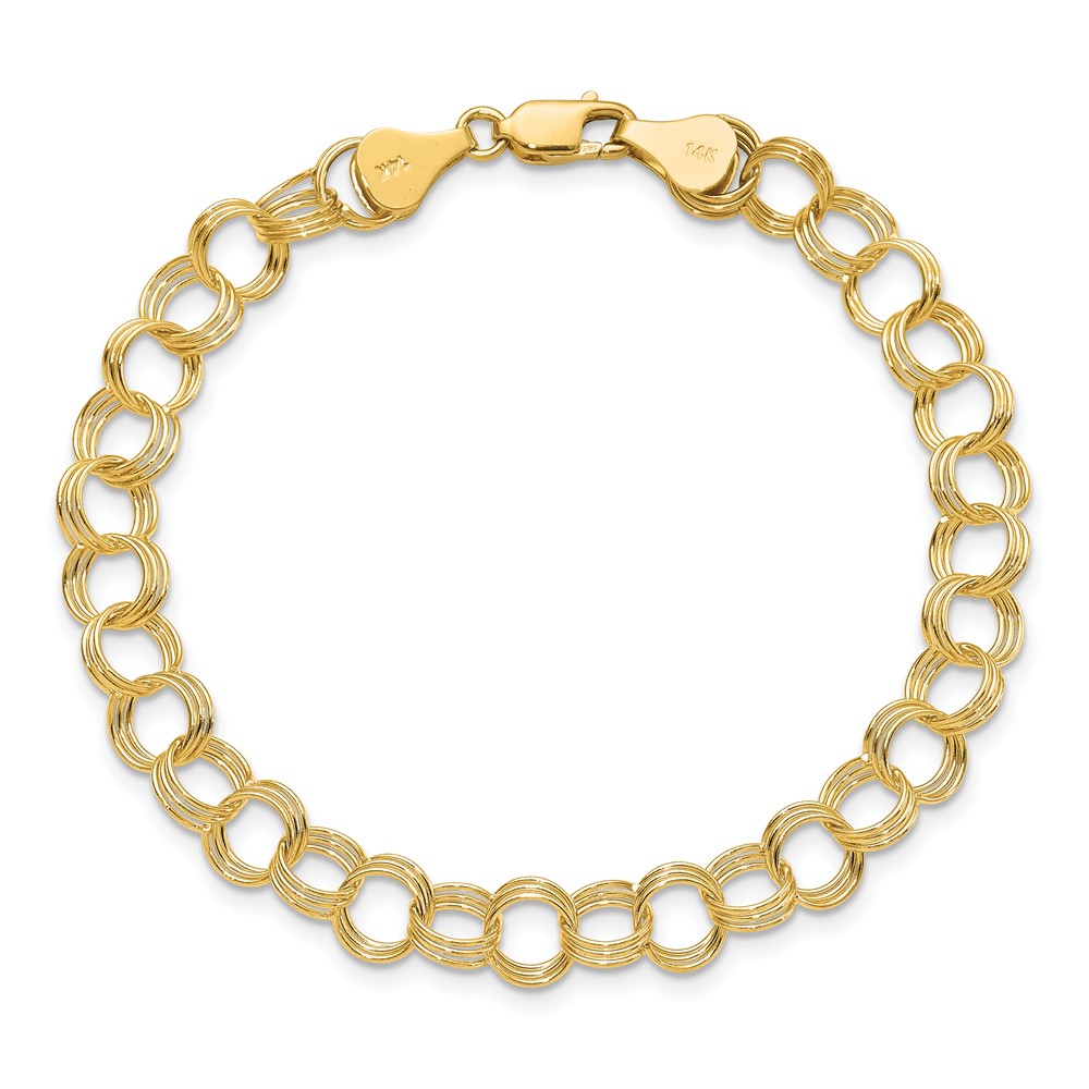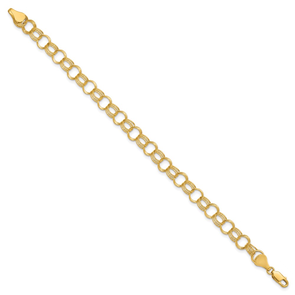 14k White Gold 7mm Solid Triple Link Charm Bracelet