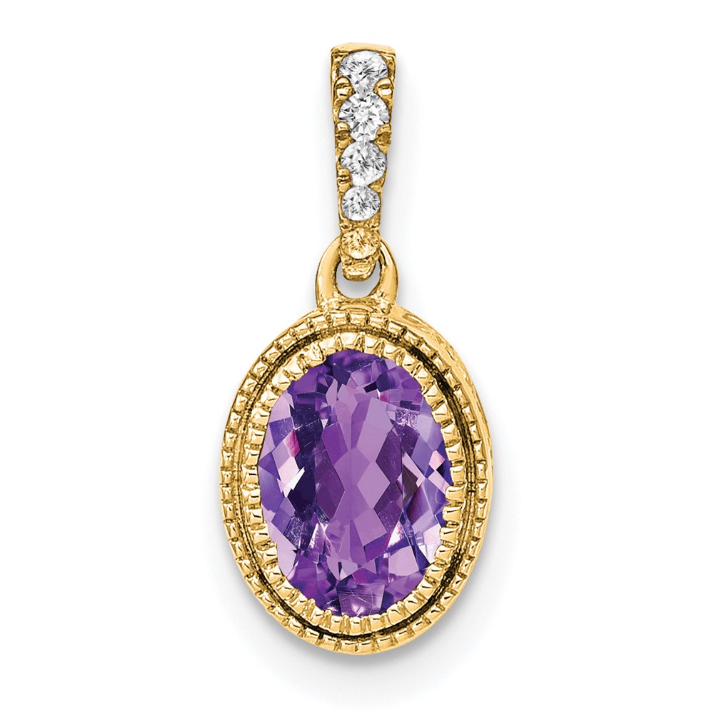 14k 7x5mm Oval Amethyst and Diamond Pendant