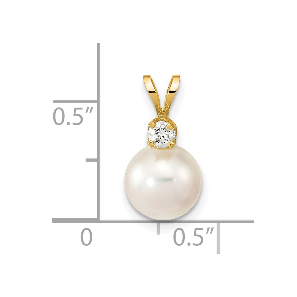 14k 8-9mm White Round Akoya Saltwater Cultured Pearl and 1/10 Carat Diamond Pendant