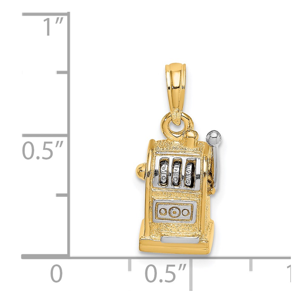 14k and White Rhodium 3-D Slot Machine with Moveable Handle Charm