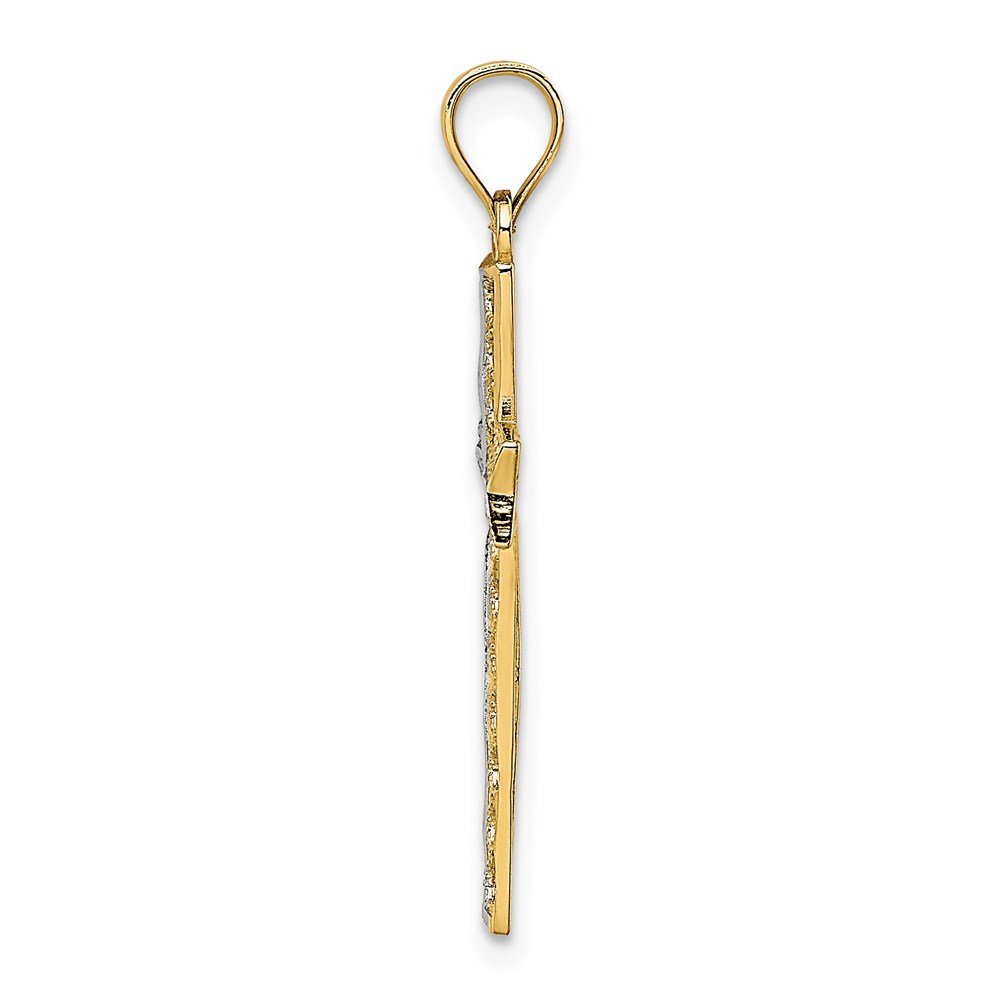 14K and White Rhodium Cross Charm
