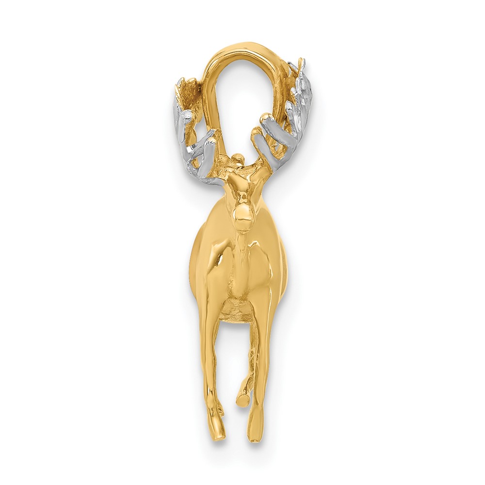 14K and White Rhodium Diamond-cut 3-D Moose Pendant
